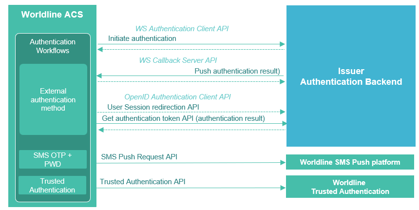The Authentication process can be provided by banks on their authentication platforms. In this case ACS uses an API the Authentication WS Client to manage it.