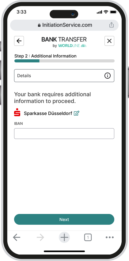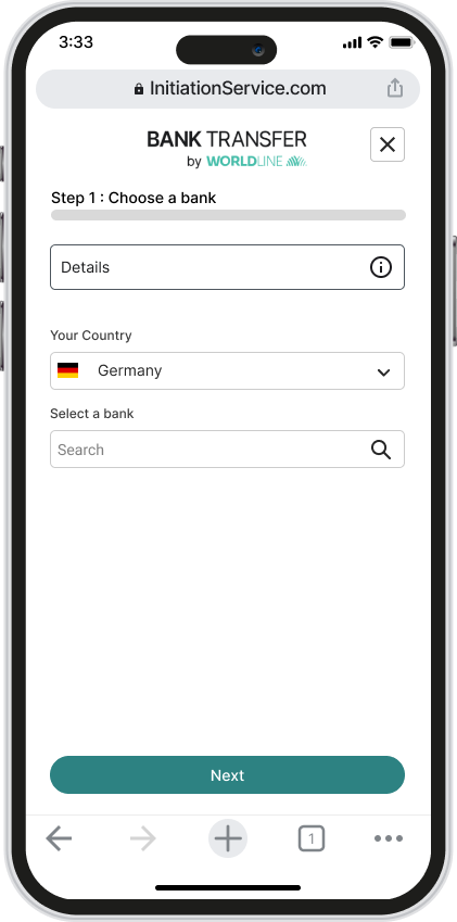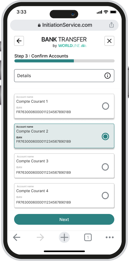 A few screenshots below show how the screens look on a mobile device with the Worldline branding. The majority of the elements can be customised to support your branding.