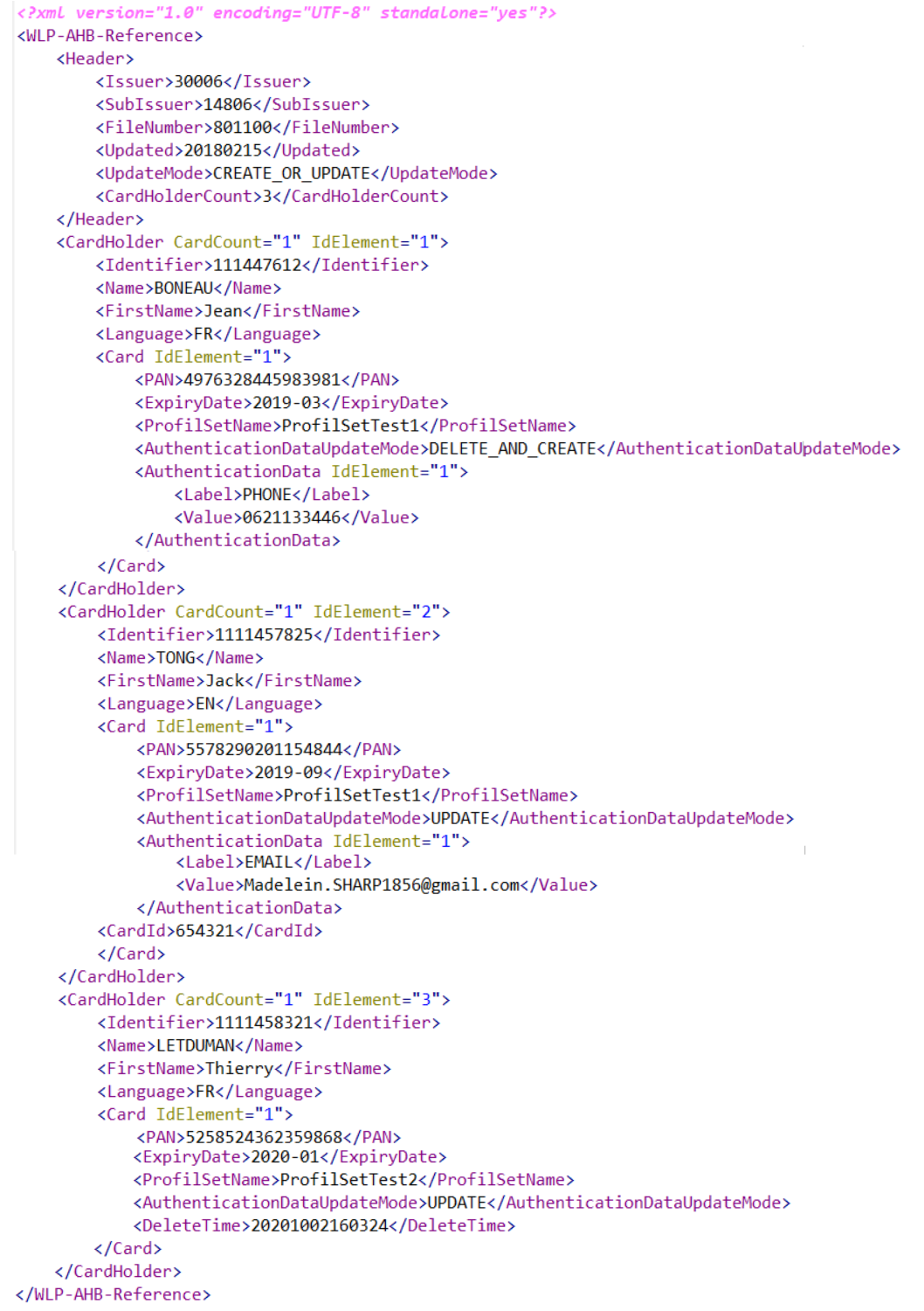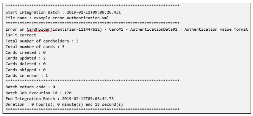 - Example: Error on CardHolder(identifier=111447612) - Card#1 : PAN is invalid Signification: The PAN of card having the IdElement=1 in section CardHolder having identifier=111447612 is invalid or missing.